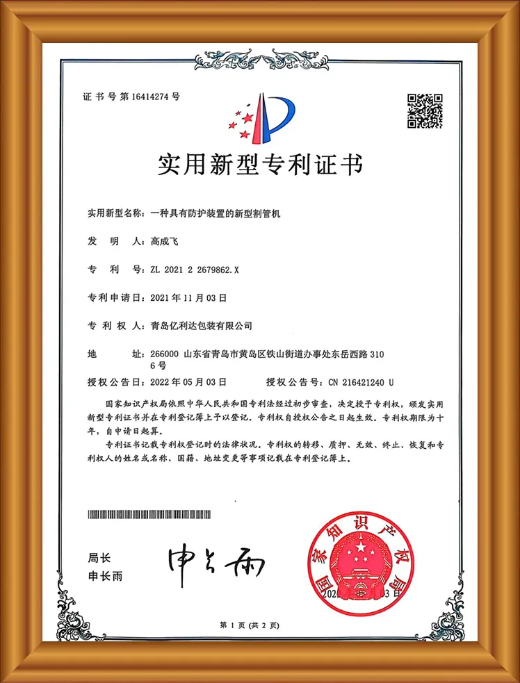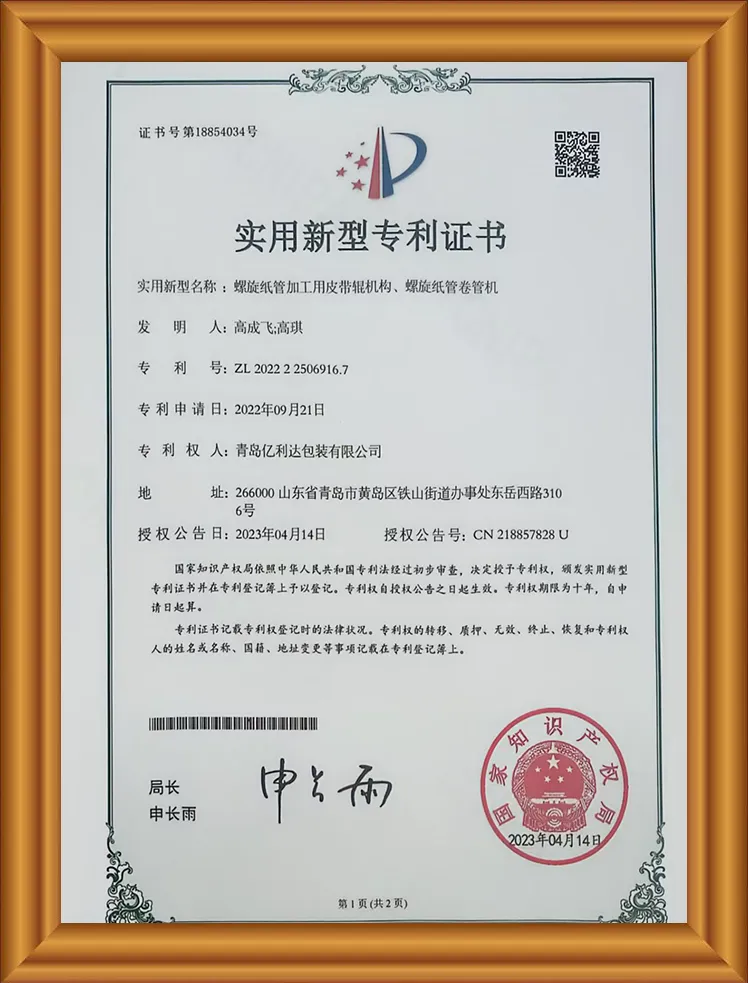 Nossos produtos são certificados FSC, certificados ISO9001, possuem sete patentes, incluindo uma conveniente máquina de tubo de papel em forma de U, um certificado especializado e inovador para pequenas e médias empresas, testes Puni e um certificado de fornecedor de qualidade.